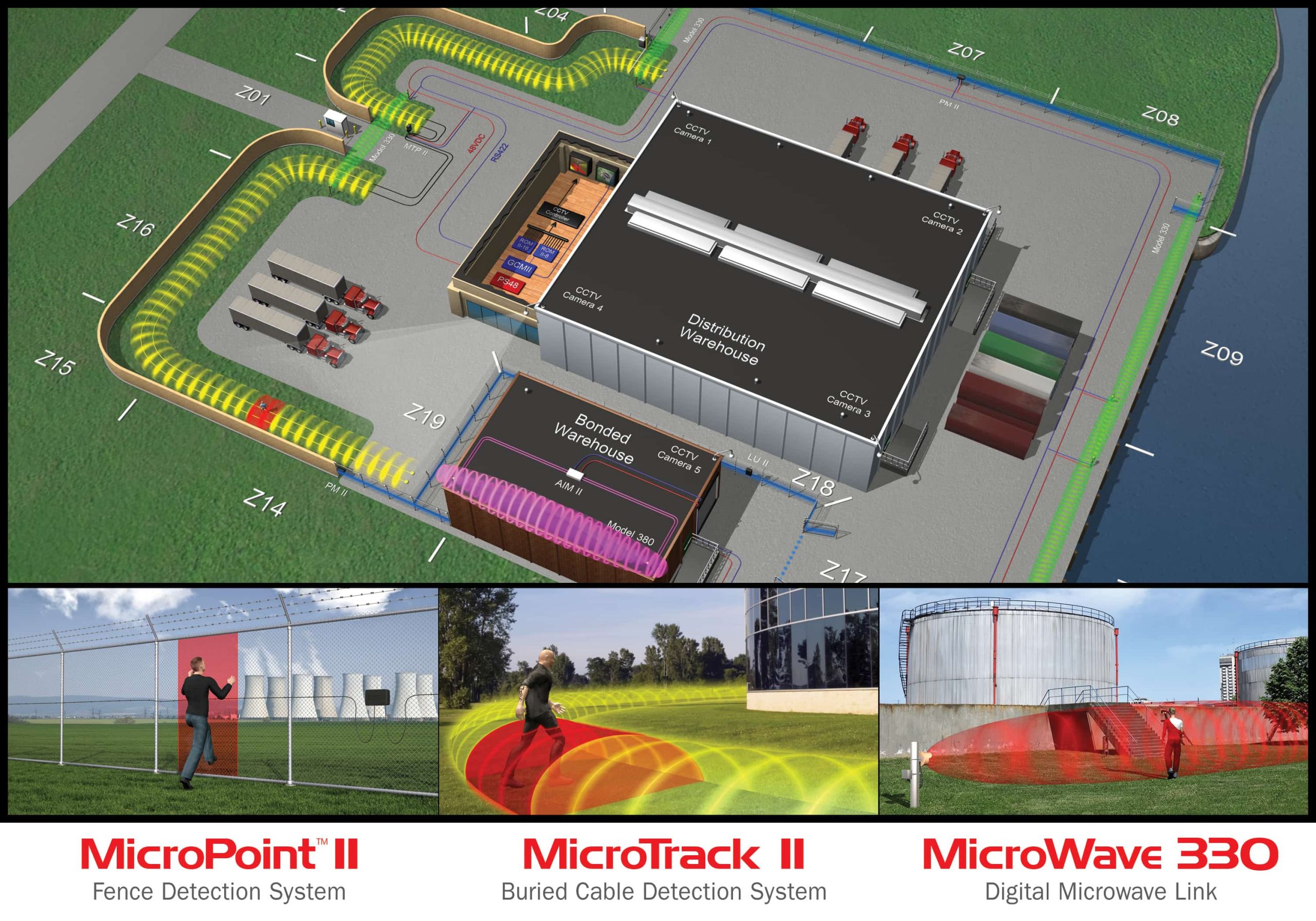 Our newest-generation suite of intelligent detection systems combines field-proven INTREPIDä perimeter protection with seamless networking capabilities. An open-architecture communications protocol conveniently integrates fence, buried cable and digital microwave detection technologies on a single network platform to protect each portion of your perimeter with the optimal sensor for that application.